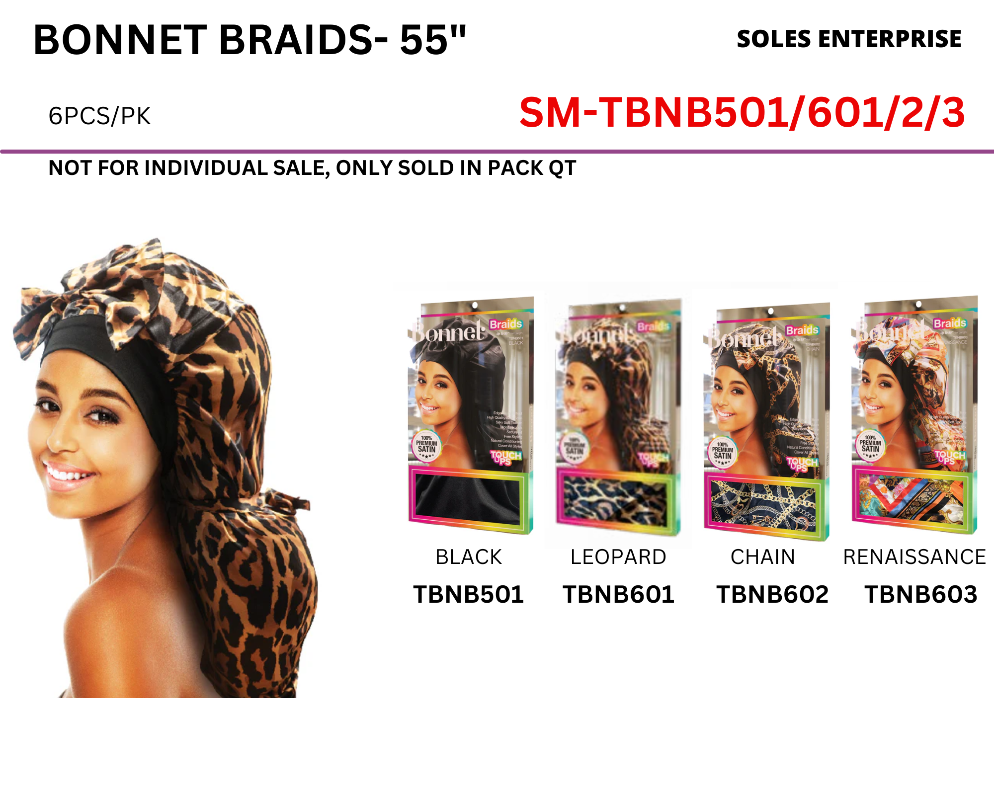 BONNET BRAIDS - 55" / TBNB601/ LEOPARD