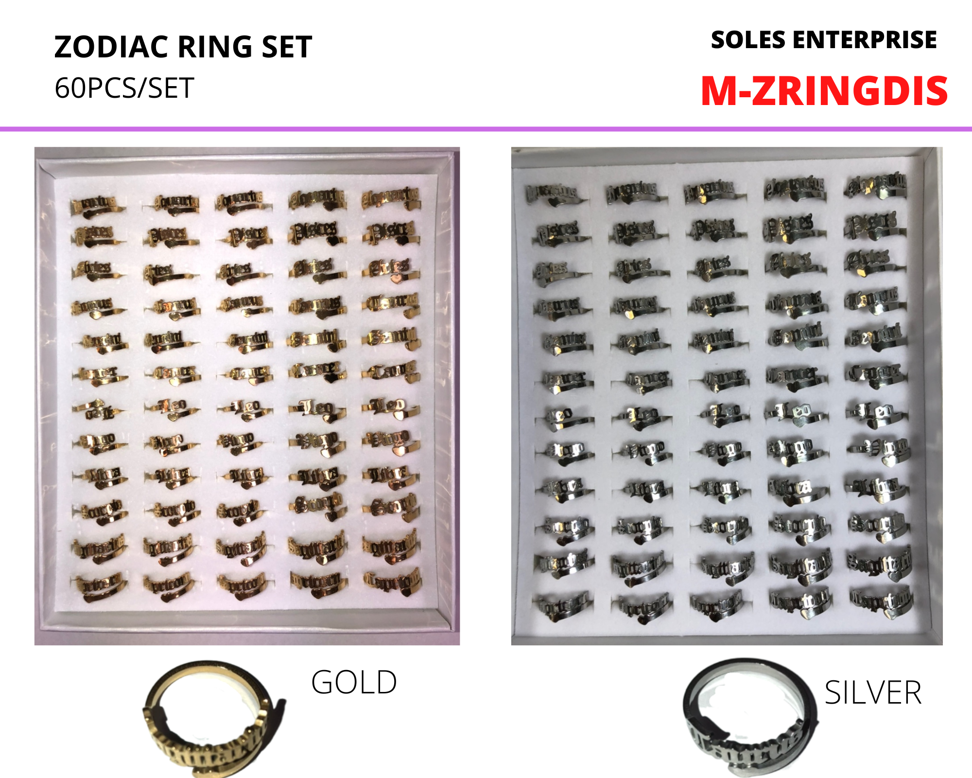 Zodiac Ring Set (60pcs/set)
